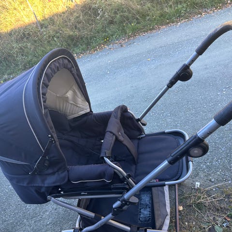 Svart Simo Duovogn. Hel og fin. Veldig god å trille da det er demping og luft-dekk, så behagelig på både asfalt og i skog/ ulendt terreng.