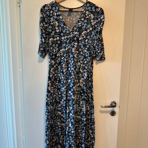 Brukt under graviditet i forbindelse med en begravelse. Stoffet er mykt og godt og kjolen legger seg pent inntil kroppen.