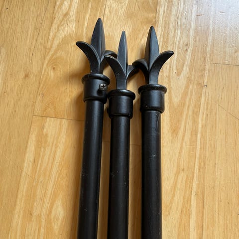 Selger en lang gardin stang i metall.