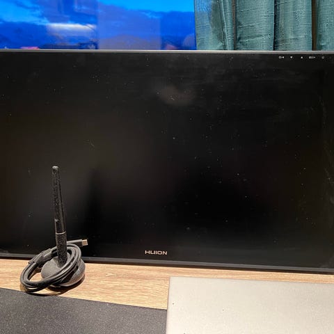Tegnebrettet kommer med penn og pennholder, plus 6 hoder til pennen