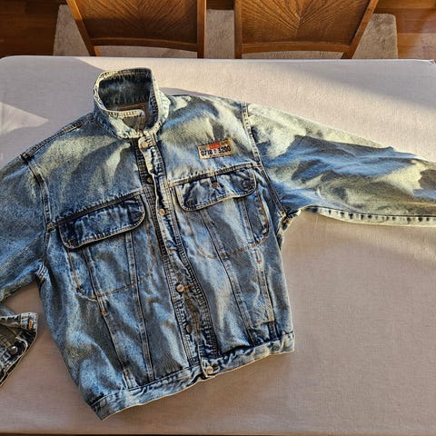 Disse jakkene var i sin tid litt lange i armene-- så derfor ble den brettet nederst ved håndledd- da ser en ikke det hullet/ revnet- heller.