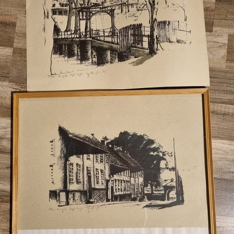 2 stk trykk eller kulltegning av Rolf Lott fra vika