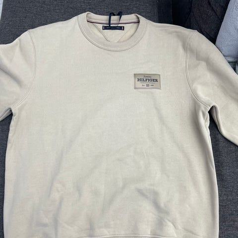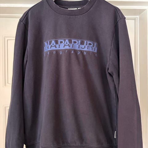 Pent brukt hvit genser fra Napapijri. 100% tynn bomull. Passer fint over skjorte, eller henge over skuldre. Ingen skader. Litt liten i str. (vil si den er XL)
