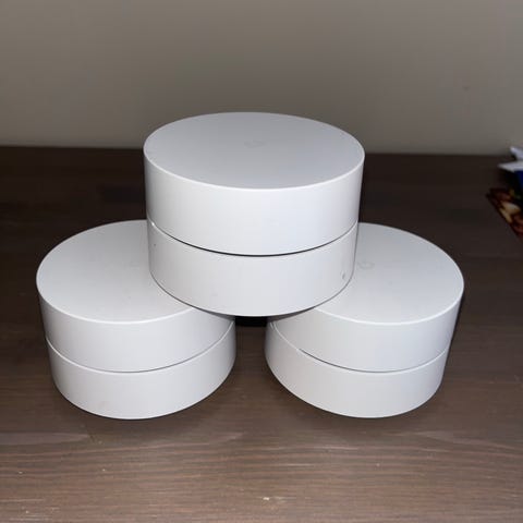 Google Nest Wifi Router og Google WiFi Router (AC1304) (blitt brukt som mesh punkt).
