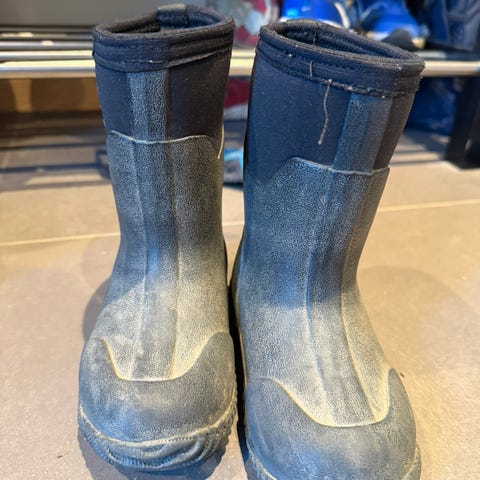 Pent brukte fôrede gummistøvler, mørkeblå, str 24