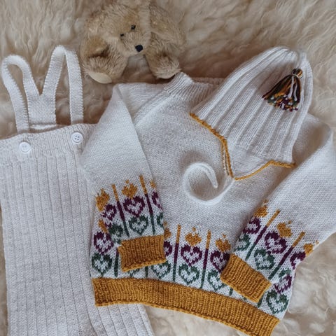 Selger ett ubrukt og nybegynner strikket klær. Ikke perfekt men kanskje noen kan ha nytte og bruke det under ytterklær.