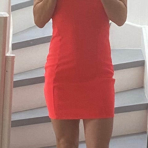 Zara festkjole i størrelse M, farge rød. Kjolen har tynne stropper og en tettsittende passform, egnet som sommerkjole til anledninger eller fester.