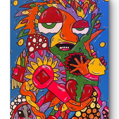 “CURATOR” er et fargerikt og energisk originalverk med lekent uttrykk og sterke kontraster.