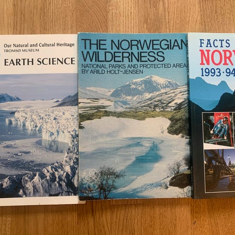 bøker om Norge – de fleste på engelsk, noen på norsk.