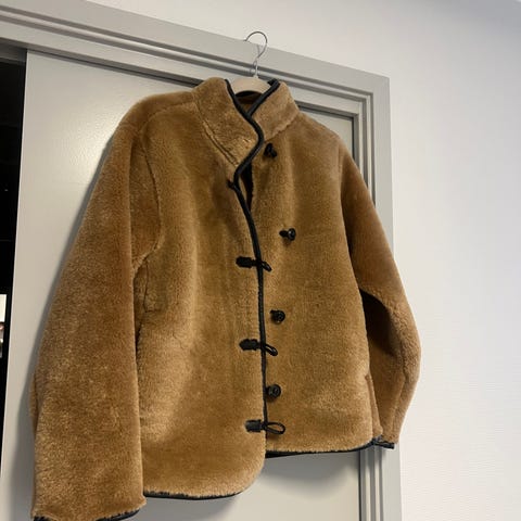 Deilig og myk jakke til å slenge på seg nå til høst og vinter. Lekker mørk rød farge. Kan sendes.