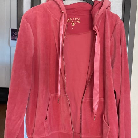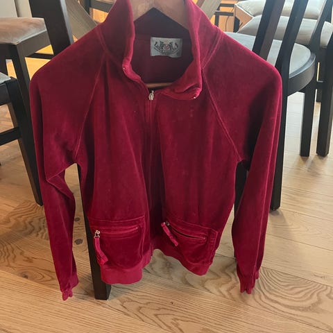 Dame jakke m/hette str S, plommerød chenille