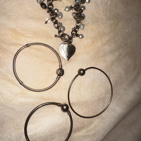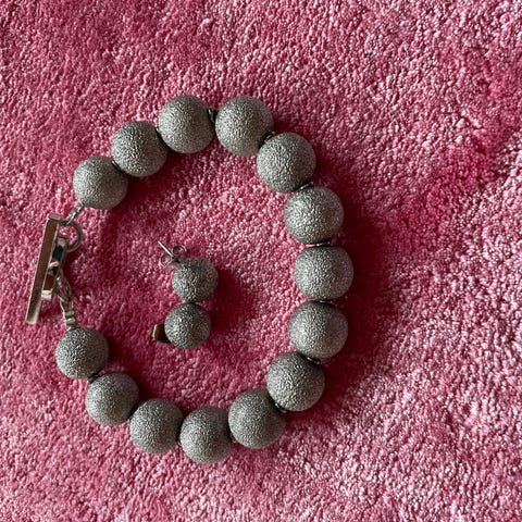 Utrolig lekkert smykkesett med armbånd og ørepynt. Virkelig et blikkfang. Armbåndet har tyngde.