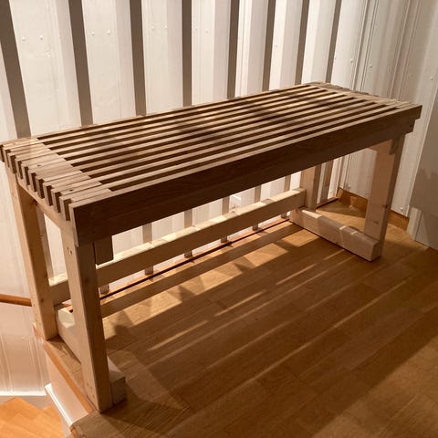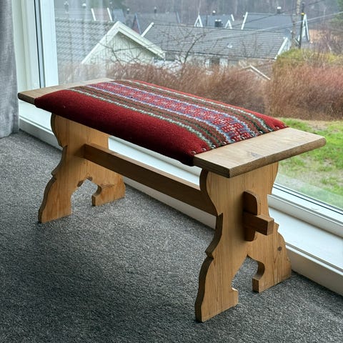 Første benken er solgt, nummer 2 selges for 1000,- og kan hentes like ved E18 forbi Arendal.