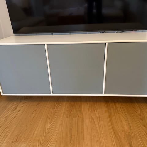 Den har 2 dører og 2 hyller. Har ikke festeoppheng eller ben. Kvalitetsmøbel fra Unnu. Finnes hull under som er blitt brukt til ben. Må helst hentes, men kan være behjelpelig med levering på Romerike.
