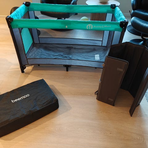 Laget for barn og designet for enkel transport og bruk på reise. Laget av slitesterkt materiale med sammenleggbar ramme. selges som den er...pgå denne var i bruk ...selges for en god og rimmelig pris.......Må hentes i Sandve på ( KARMØY )