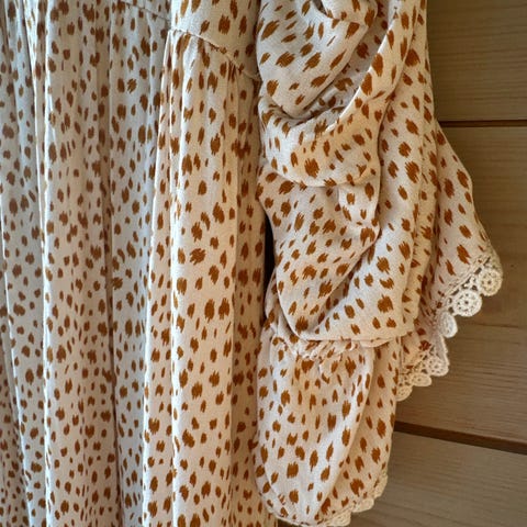 Stoff av babycord i pene høstfarger(oker, orange, bakgrunn i burgunder) som passer spesielt godt til vinterhalvåret.