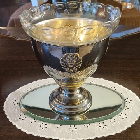 Elegant tung stabil og høy. Hele 63cm høy. Diameter 44cm.