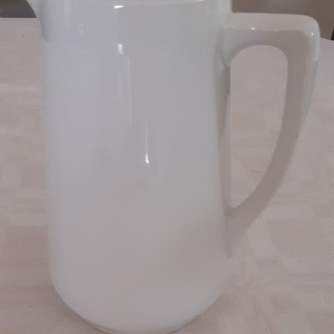 Selger en mugge fra Porsgrunn Porselensfabrikk rimelig pga et lite skår som er slått av under muggen (se bilde). Ellers pent brukt. Høyde: ca 20 cm. Denne er antakelig produsert på 1960-tallet.