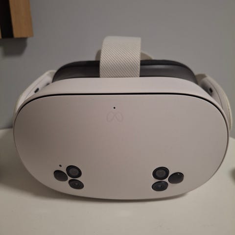 Oculus Quest 2 VR Headset. 64 gb versjon, Den er oppgradert med både pro headstrap til 400kr og en limited edition fjes pute som er mye mer komfortabel på huden fra virtual reality oasis til rundt 500kr, den har materiale sånn at man ikke trenger å få alt lys inn mens man spiller. Headsettet er 3 år gammelt men fortsatt masse bruk igjen!! Det er litt skrammer her å der, men fortsatt veldig fine!
