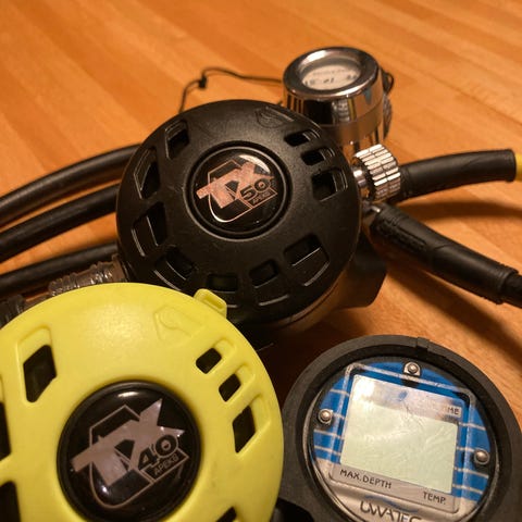 Apeks MK17 EVO regulatorsett for dykking med første og andre trinn, inkludert slanger og manometer. Regulatoren er laget for å gi pålitelig lufttilførsel under vann, egnet for sportsdykking og teknisk dykking. Materialet er robust og korrosjonsbestandig, designet for å tåle krevende undervannsforhold.