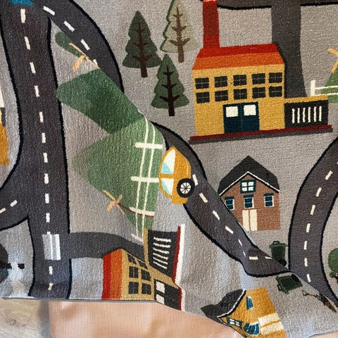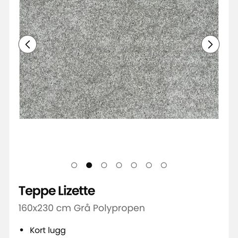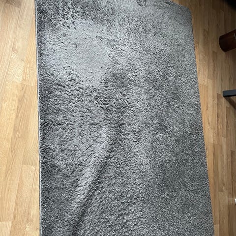 Pent brukt gulvteppe fra Rusta, merke Lizette. 200 x 290 cm, grå farge. Integrert underlag i teppet. Kan klippes til ønsket størrelse om man vil ha mindre teppe, og skøtes med tilsvarende teppe om man vil ha større teppe. Må hentes i Kjøkkelvik.