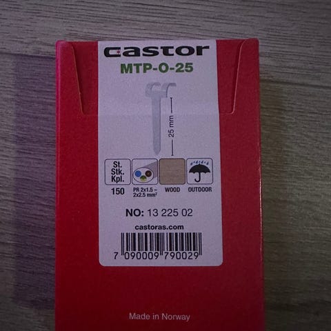 Klammer TO-O-16 for feste av PR-kabler 2x1,5mm2 - 2x2,5mm2. Stiftlengde 16mm.