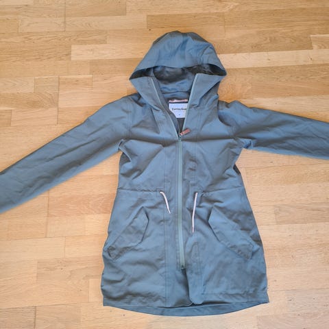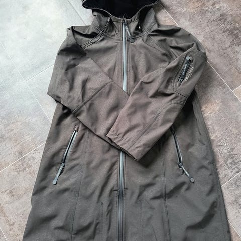 Bergans Vika Lady Coat 7000, i størrelse S, selges. Dette er en lang (se bilde med eksempel) damejakke i softshell med hette, toveis glidelås og praktiske lommer også med glidelås. Fleecemateriale på innsida.
