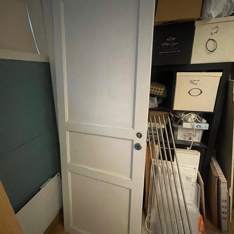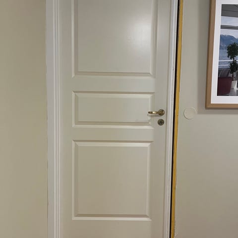 Hvite originale tredører med klassisk speil og messing håndtak selges.