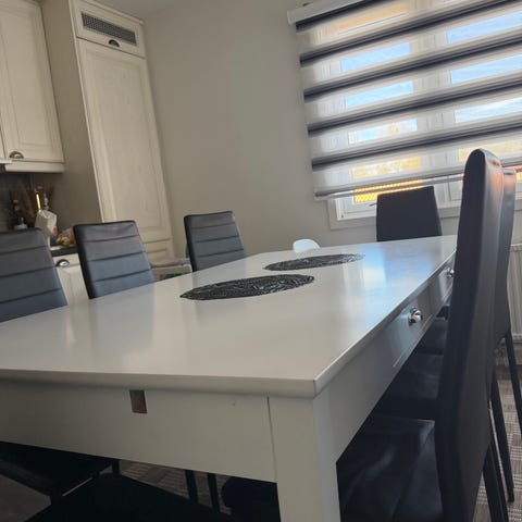 Selger en komplett og moderne spisestue som vil gi et sofistikert preg til ethvert hjem. Spisestuen inkluderer: