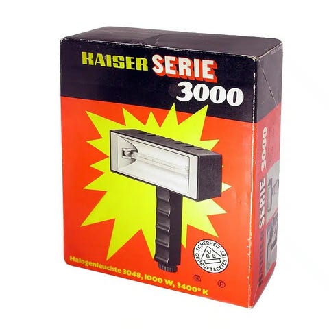 Mibo JL900 1000 Watts lampe til bruk for foto og smalfilm. Halogenpære følgjer med som gir lys med fin, varm fargetone. Lampen er testa og verkar fint. Men kor lang levetid pæra har igjen, veit eg ikkje. Eit deksel følgjer med. Leidninga er ujorda. Adapter for å bruke ujorda leidningar i jorda stikkontakter finst på nettet.