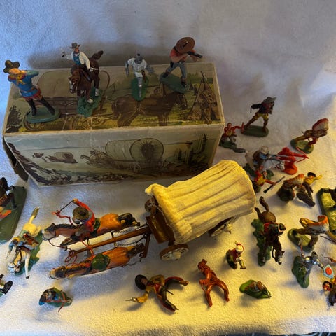 De har ingen stand med god maling, men alle har knekte eller manglende våpen.