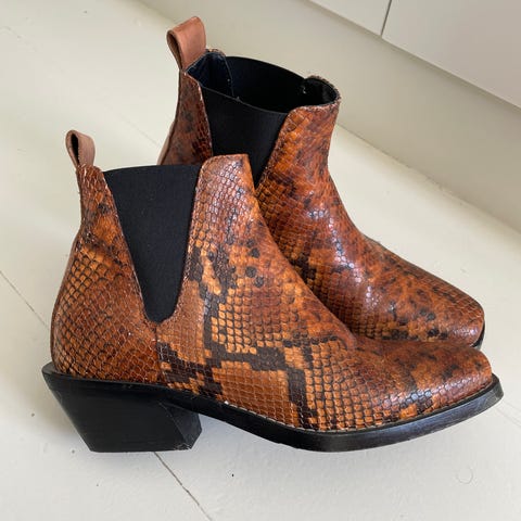 Selger noen nye boots fra kvalitetsmerket Unisa. Ankelstøvlettene er slangemønstret og veldige tøffe. Perfekte sko til høsten. Er normal i størrelsen. Kostet 1599,- nye.