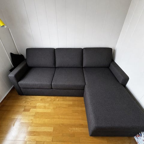 Myk, romslig og behagelig sofa! Selges da jeg har kjøpt større sofa! Følger med fire puter.