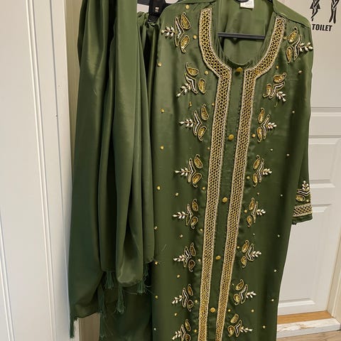 Todelt sett, med sjal. Mye muligheter for å sy inn og ut.