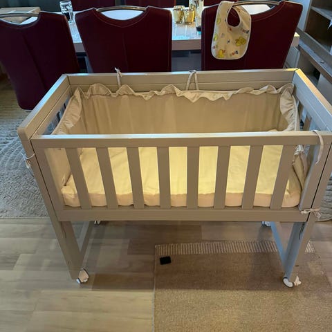 Selges rimelig pga en skade på hjørnet. Den har påvirker ikke bruken av sengen. Tror det er en skrue som er skrudd for langt bare. Kan evt sette i ny skrue og litt trelim så ser den ut som ny.