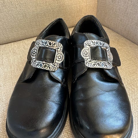 Bunadsko til gutt i str 35. Brukt kun 2 ganger. Sålen og selve skoen er ikke slitt, men tuppen av skoene er ganske slitt dessverre( se bildet).