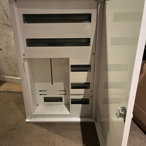 Stort Ubrukt sikringsskap men fått en liten ubetydelig bulk vil jeg si. Ikke sprukket. Mulig handy person kan fikse det. Trengs ikke vil jeg si. Hbo 2000 ikke med sikringer selvfølgelig