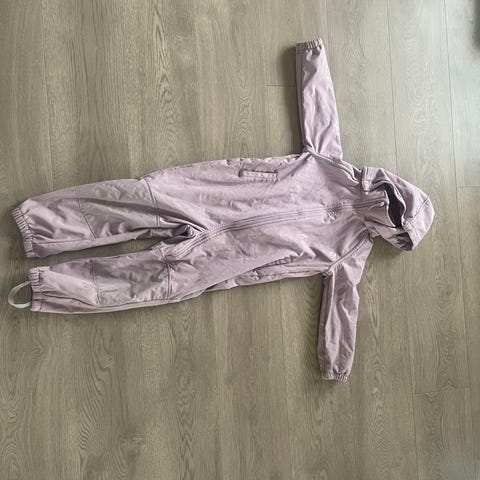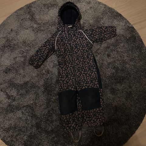 Name it parkdress for jente i størrelse 116. Kjeledressen har hette og hel glidelås foran. Materialet er mykt og slitesterkt, med forsterkede partier på knær og sete for ekstra holdbarhet.