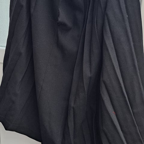 Dette er stakken til min mors bunad. Hun var en liten dame på 1,50. Da hennes oldebarn (på 1,60) skulle få bunaden, måtte det sys ny stakk, fordi denne ikke er mulig å legge ned pga den røde avslutningen nederst (ikke nok svart stoff).