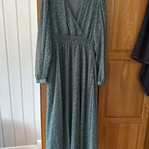 Careless Hverdagskjole i størrelse L for kvinner. Kjolen har en grønn farge og er laget i et lett og luftig materiale. Den har puffede ermer og en smal midje med elastisk detalj. Passer til hverdagsbruk.