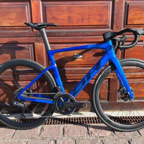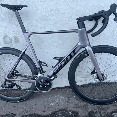 Aerolandeveissykkel med sram Rival Axs, elitewheels 50 karbonhjul og en lett og stiv ramme fra Giant med glimrende fartsegenskaper - men som også tar deg lett opp og ned i kupert terreng.