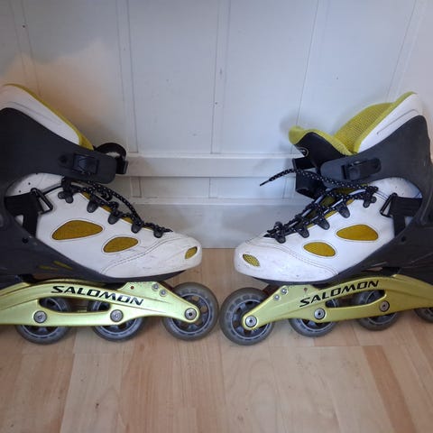 Salomon X3 rulleskøyter i størrelse 39. Skøytene er svarte med justerbare spenner for god passform. Designet for rulleskøyting og laget med slitesterkt materiale for stabilitet og komfort.