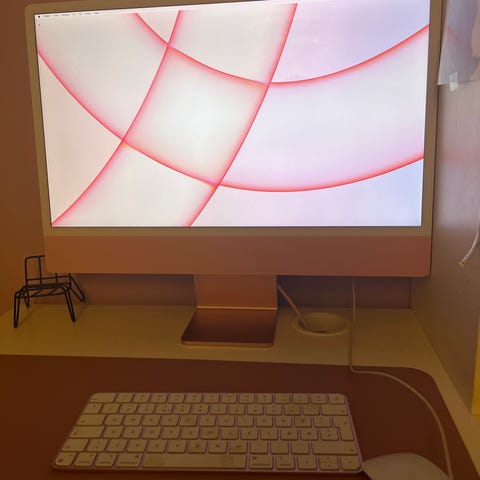 IMacen er i dagleg bruk. Vart kjøpt på Eplehuset mai 2022. Når ein kjøpar har meldt seg vert den sett tilbake til fabrikkinnstillingar, eventuelt oppgradert igjen til siste macOS, Sequoia 15.