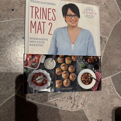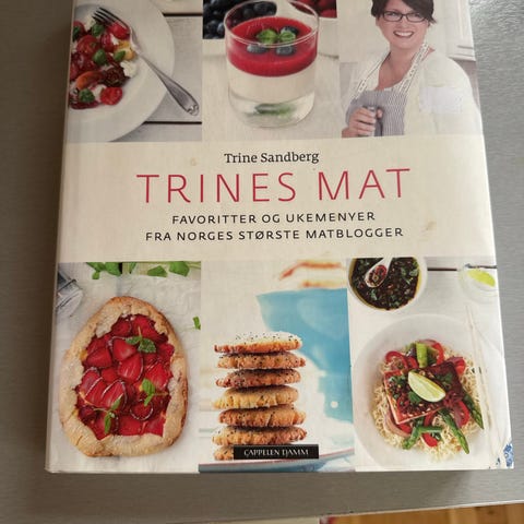 Trines mat er full av gode matoppskrifter. Boken er pen, bare papiromslaget bak som er litt krøllete