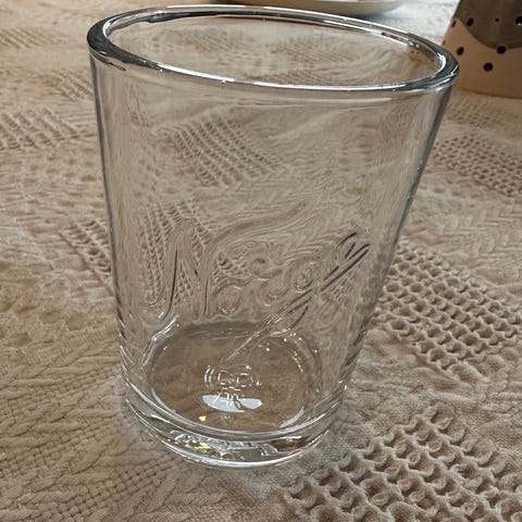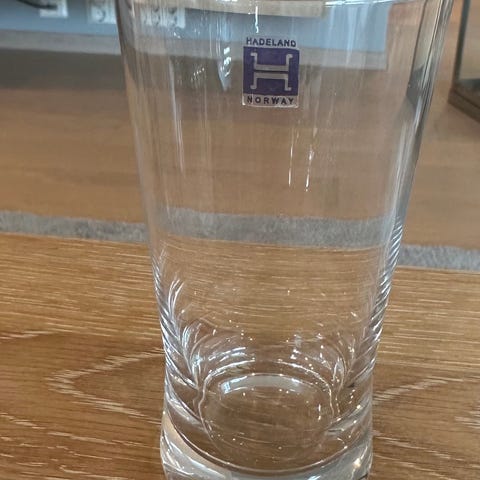 Det ene glasset har et merke på siden. Jeg har ikke sett det før nå - ser ut som en liten vanndråpe - helt glatt