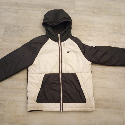 Nike Jordan Vinterjakke i størrelse L for herre. Jakken er svart og har hette. Den er designet for vinterbruk med isolerende materiale for å gi varme og beskyttelse mot kulde. Jakken har glidelås og lommer, og er laget av lett og slitesterkt stoff.