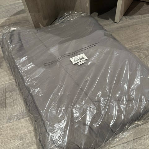 Befinner seg i hus med hund, men teppet er fortsatt i plast