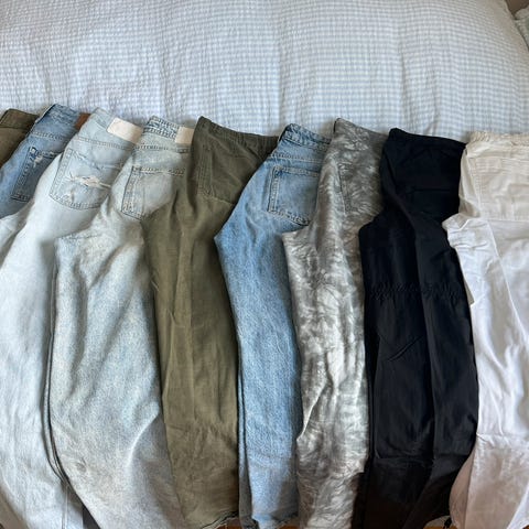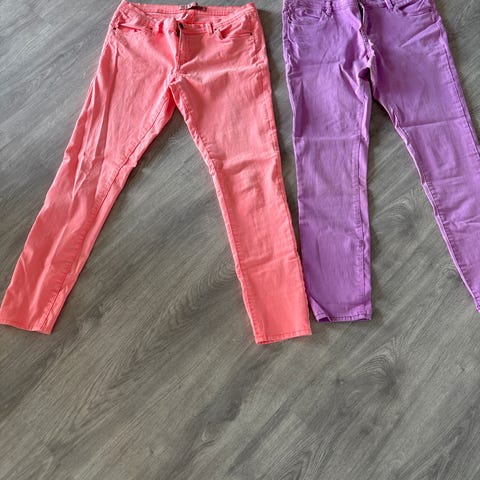 Hvite bukser med kule detaljer av pastell-farger