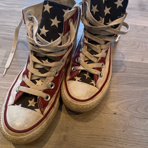 Converse Unisex str 37,5 Høye Hvite med Rød og Svart Detalj