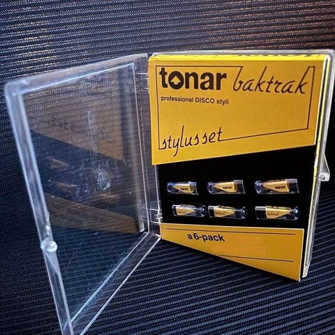 Helt nye Tonar baktrak DJ platespiller stift til halv pris. 350,- pr. stk. Har flere, ved større kvanta kan pris diskuteres. Den passer også til alle andre OM og Concorde DJ pickuper fra Ortofon.